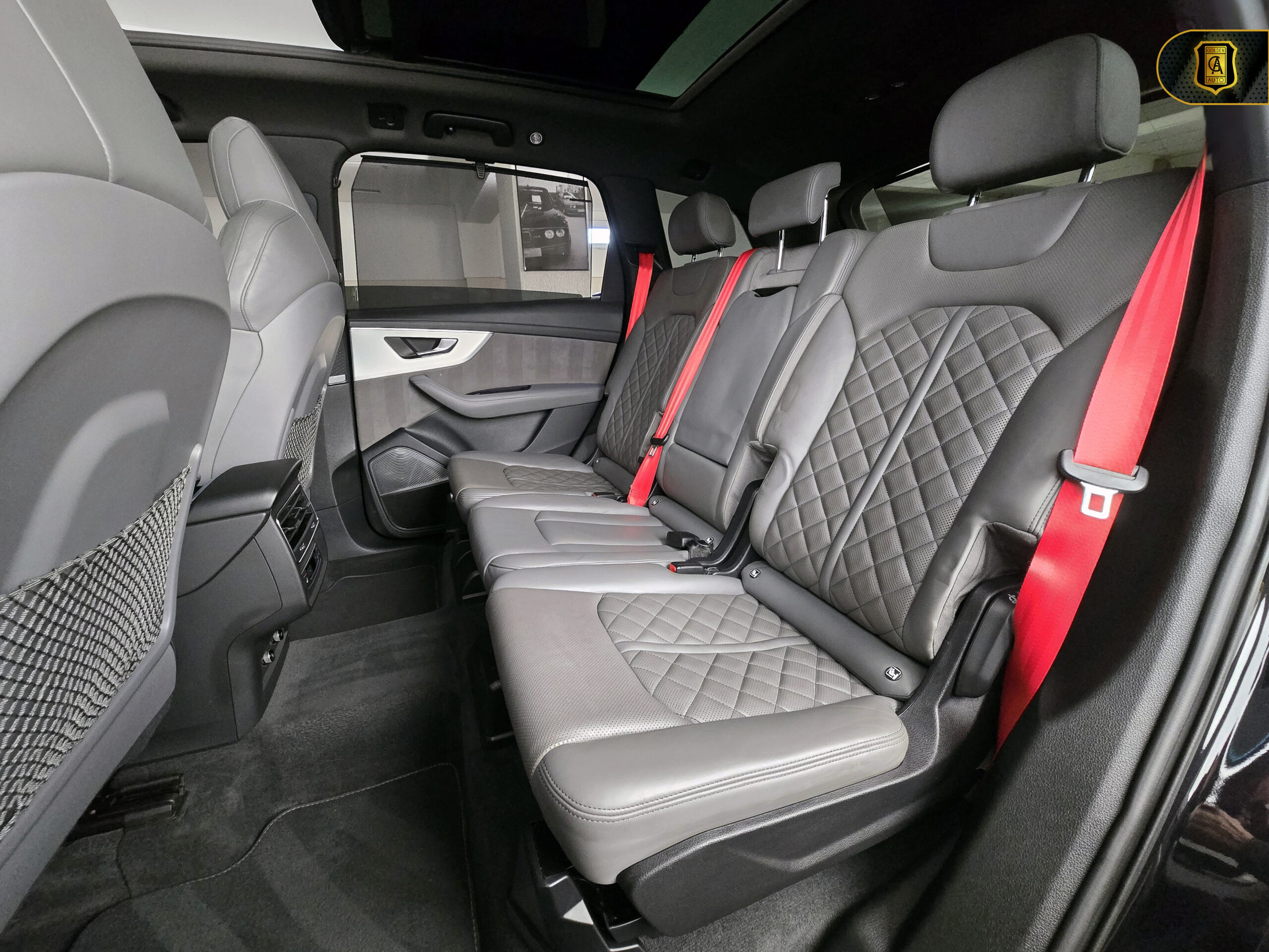 ☑ Tapițerie piele Valcona gri, model specific S line în romburi și cusături contrastante albe