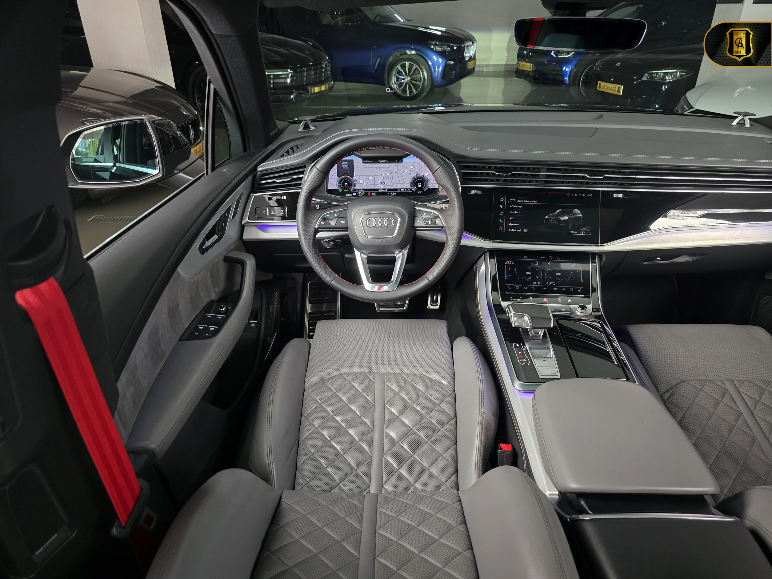☑ Audi Drive Select – Funcții disponibile: OffRoad / Allroad / Efficiency / Comfort / Auto / Dynamic / Individual – setări diferite asupra suspensiei adaptive, direcției și rapoartelor cutiei de viteze în funcție de stilul de condus dorit