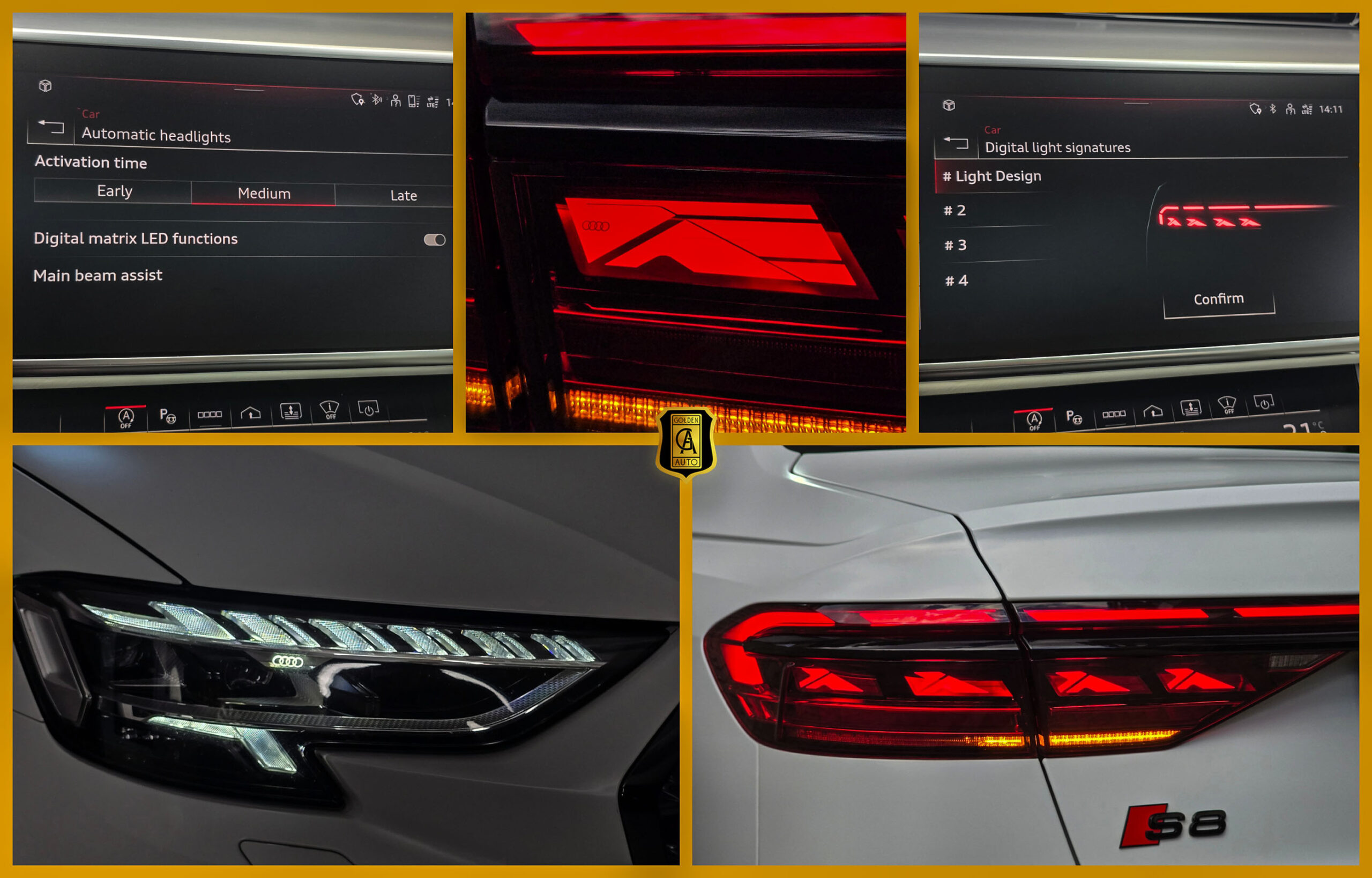 - Faruri Matrix LED Digital (PREȚ de listă 1.737,00 EUR): cea mai avansată tehnologie de iluminare din lume, la ora actuală, este oferită de Audi pe modelele sale de top. Aceste faruri sunt capabile să proiecteze holograme pe asfalt pentru avertizarea șoferului.
